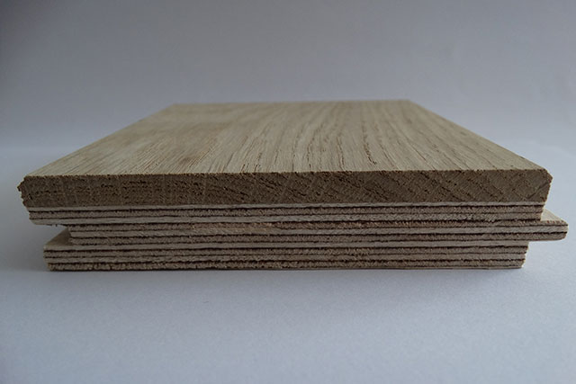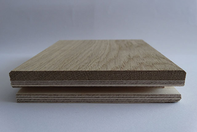 مصنوعة من طبقتين ملتصقتين: طبقة التآكل العلوية (الخشب الصلب، البلوط، الرماد أو