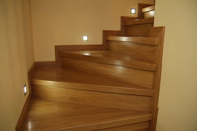 أرضيات الباركيه فقط، ولكن أيضًا السلالم، وكلاهما موضوع مباشرة على الخرسانة و